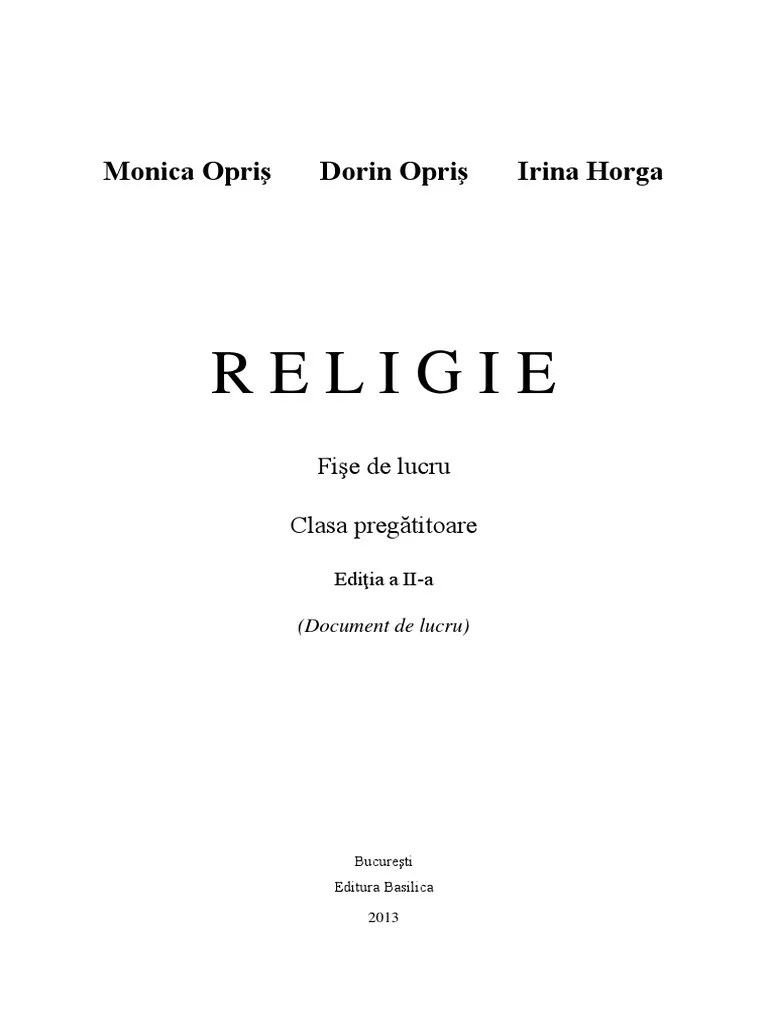 Patriarhia română monica opriş dorin opri ş r e. Patriarhia română monica opriş dorin opri ş r e. Bine aţi venit la ora de religie! Editura basilica a patriarhiei române a publicat setul de 26 de fișe de lucru la disciplina religie, pentru elevii de la clasa pregătitoare, materiale didactice care au binecuvântarea preafericitului părinte daniel, patriarhul bisericii ortodoxe române și avizul ministerului educației, cercetării, tineretului și sportului. Coordonatori ai proiectului „religia la clasa pregătitoare":. Bine aţi venit la ora de religie!