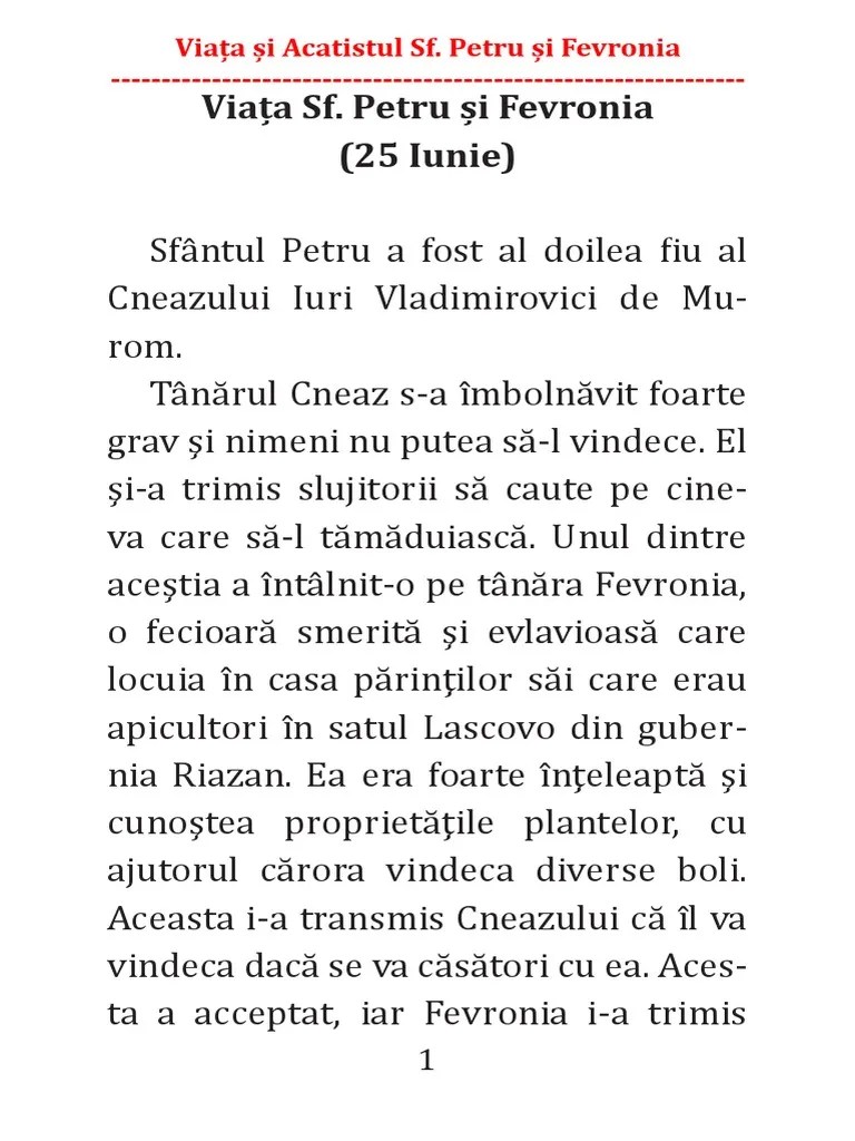Acesta este scopul luptei noastre:. Însă multitudinea produselor alimentare existente pe piață, pentru care nu mai depunem nici un minim de efort, ne. 29/06/2012 · acatistul sfintilor petru si pavel. Cei ce sunteti intre apostoli, mai intai pe scaun sezatori si lumii invatatori, stapanului tuturor rugativa, pace lumiii sa daruiasca si sufletelor noastre mare mila. Acatistul sfintilor apostoli petru si pavel 2 audio preview 29/06/2011 · acatistul sfinţilor apostoli petru şi pavel * condacele şi icoasele: An illustration of a 3.5 floppy disk. An illustration of an audio speaker. 11/11/2017 · acatistul sfantului antonie de la iezer: